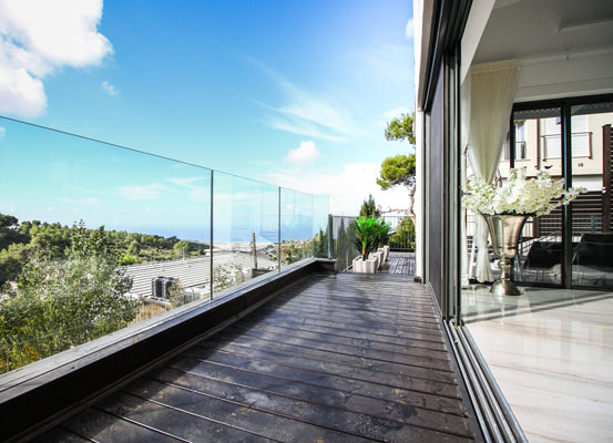 מעקה זכוכית למרפסת